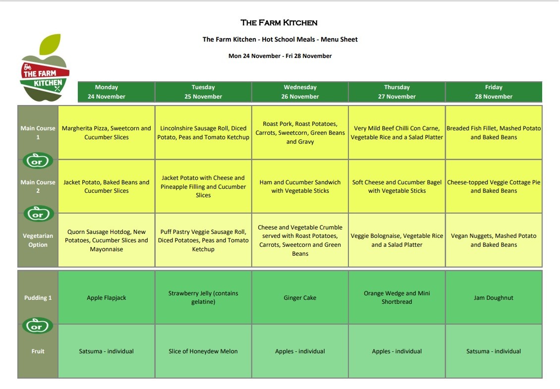 THIS WEEK’S MENU Take a look at the menu for, WC Monday 24th November – we have lots of firm favourites……